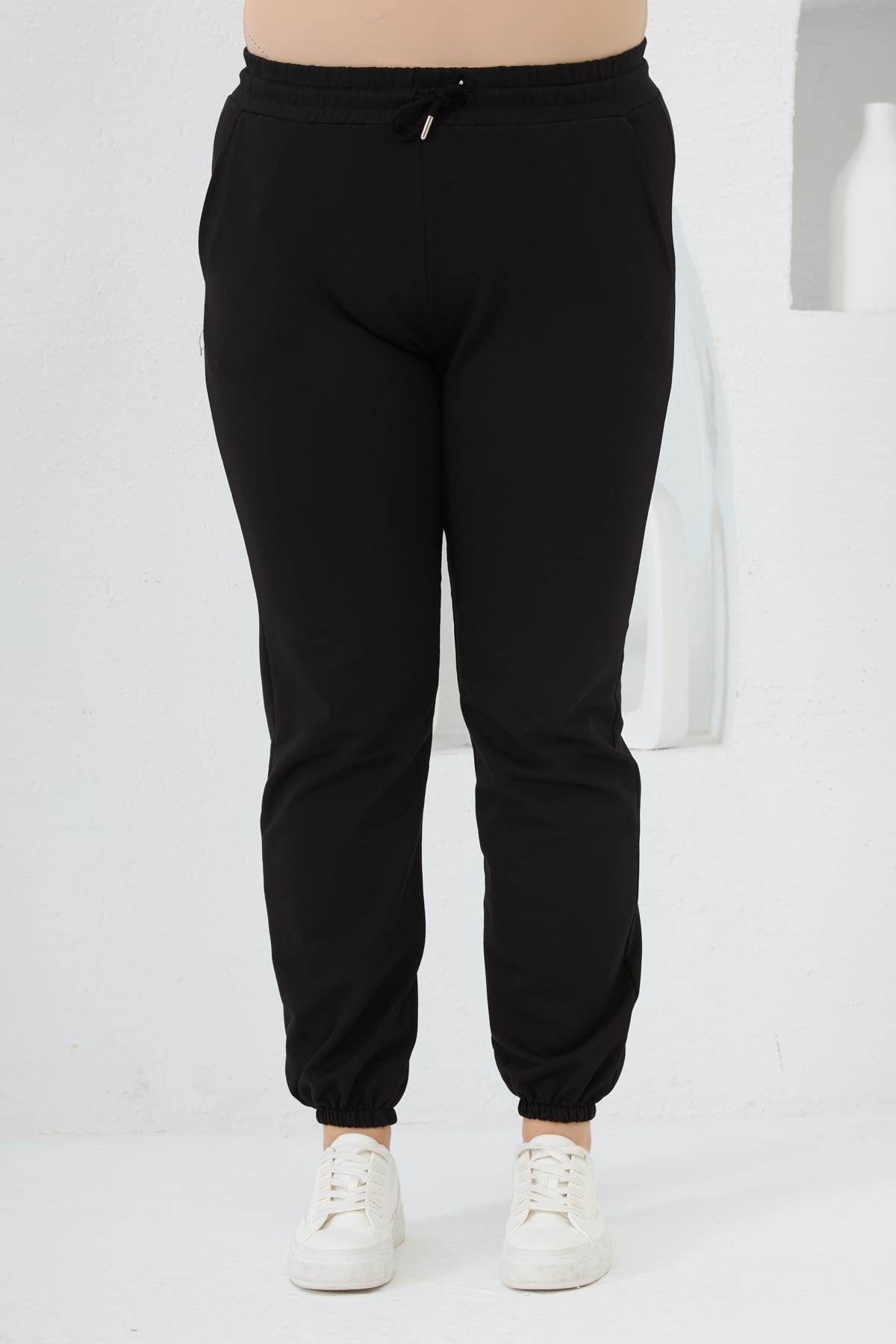 Paçası Lastikli Büyük Beden Siyah Eşofman (1603-SİYAH)