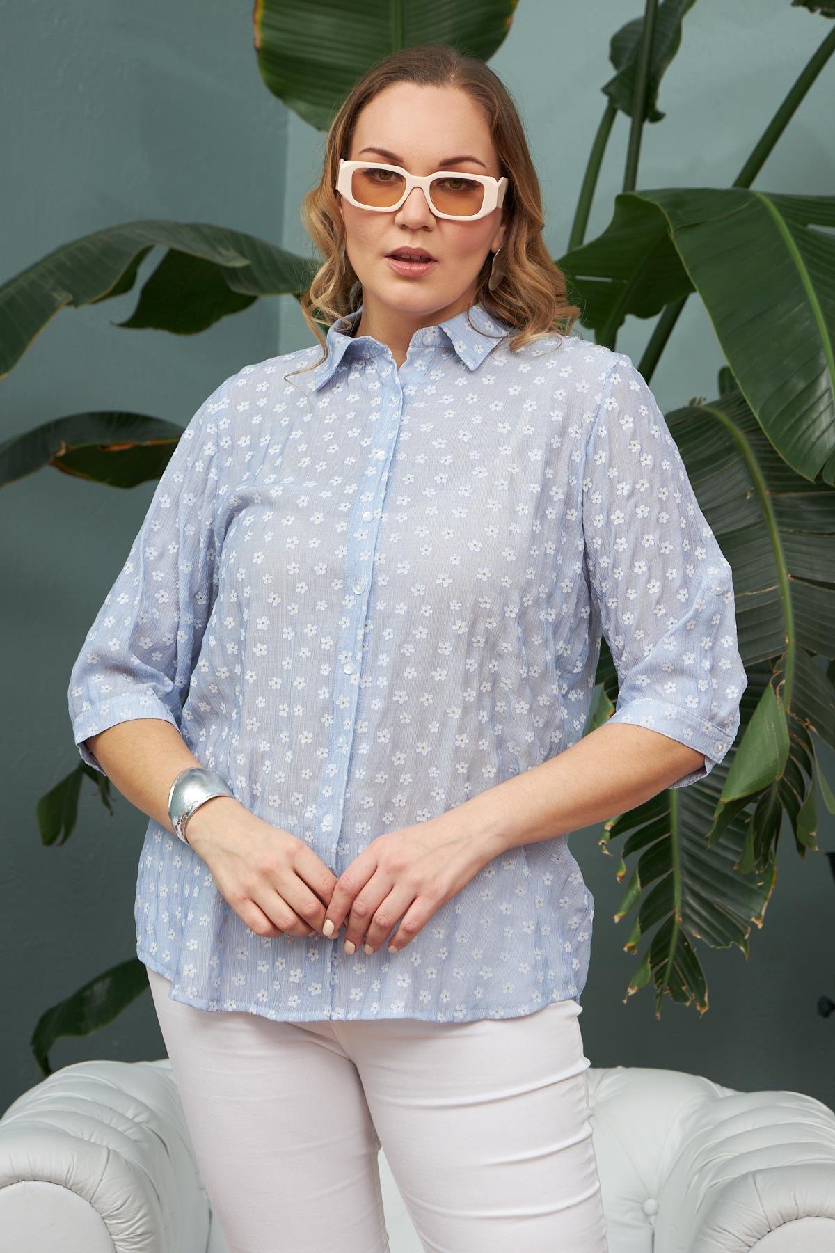 Papatya Desenli Büyük Beden Mavi Gömlek (O6045-MAVİ)