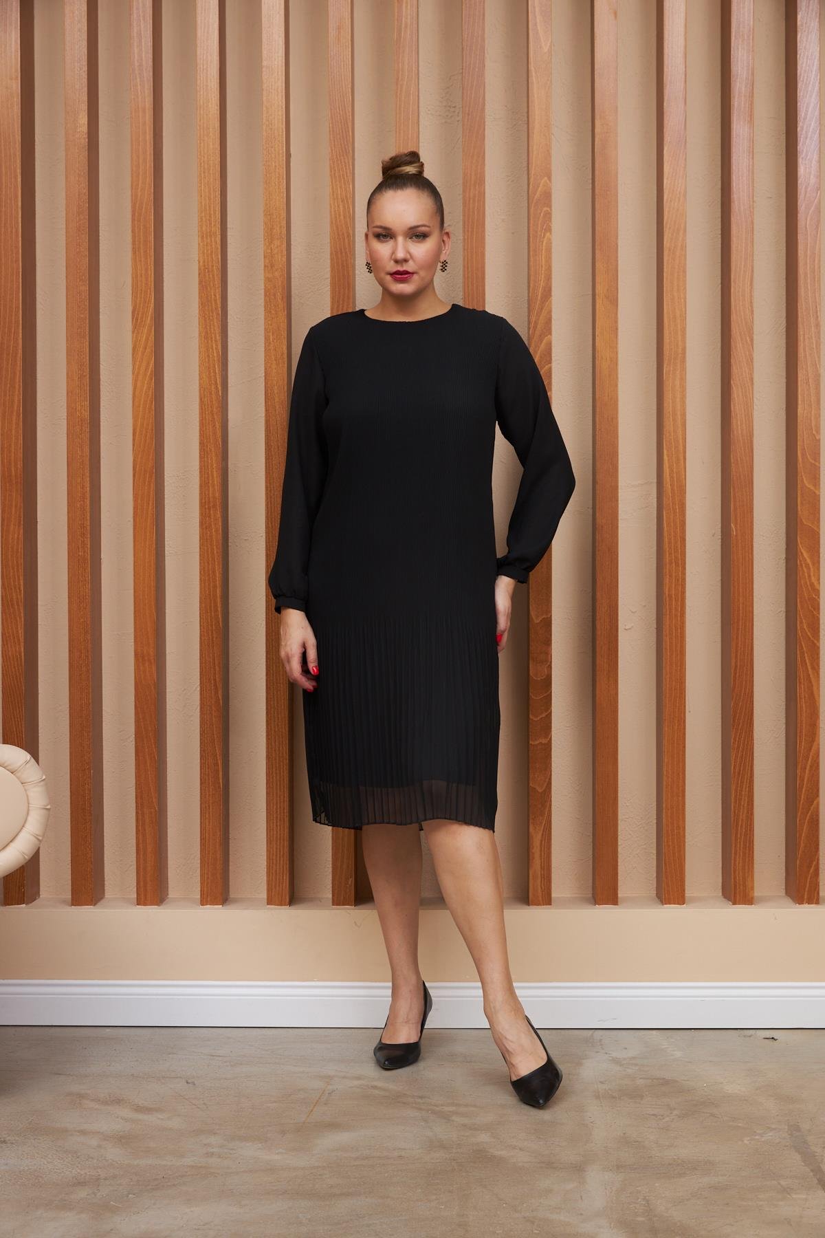 Piliseli Uzun Kol Büyük Beden Siyah Abiye Elbise