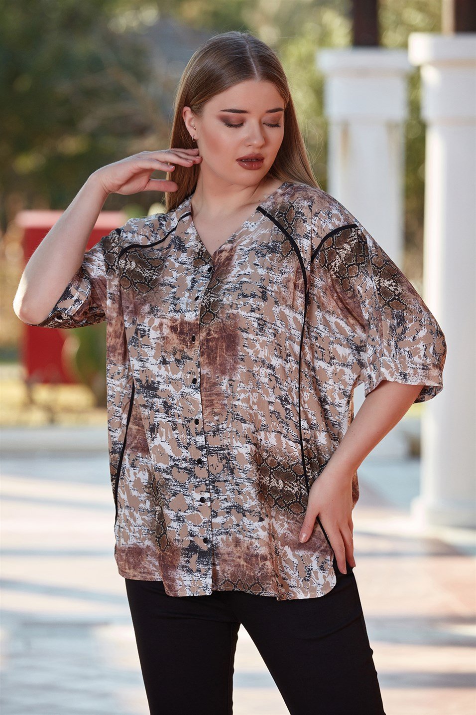 Rmg Piton Desenli Yarasa Kol Büyük Beden Gömlek (6596Y-VİZON)