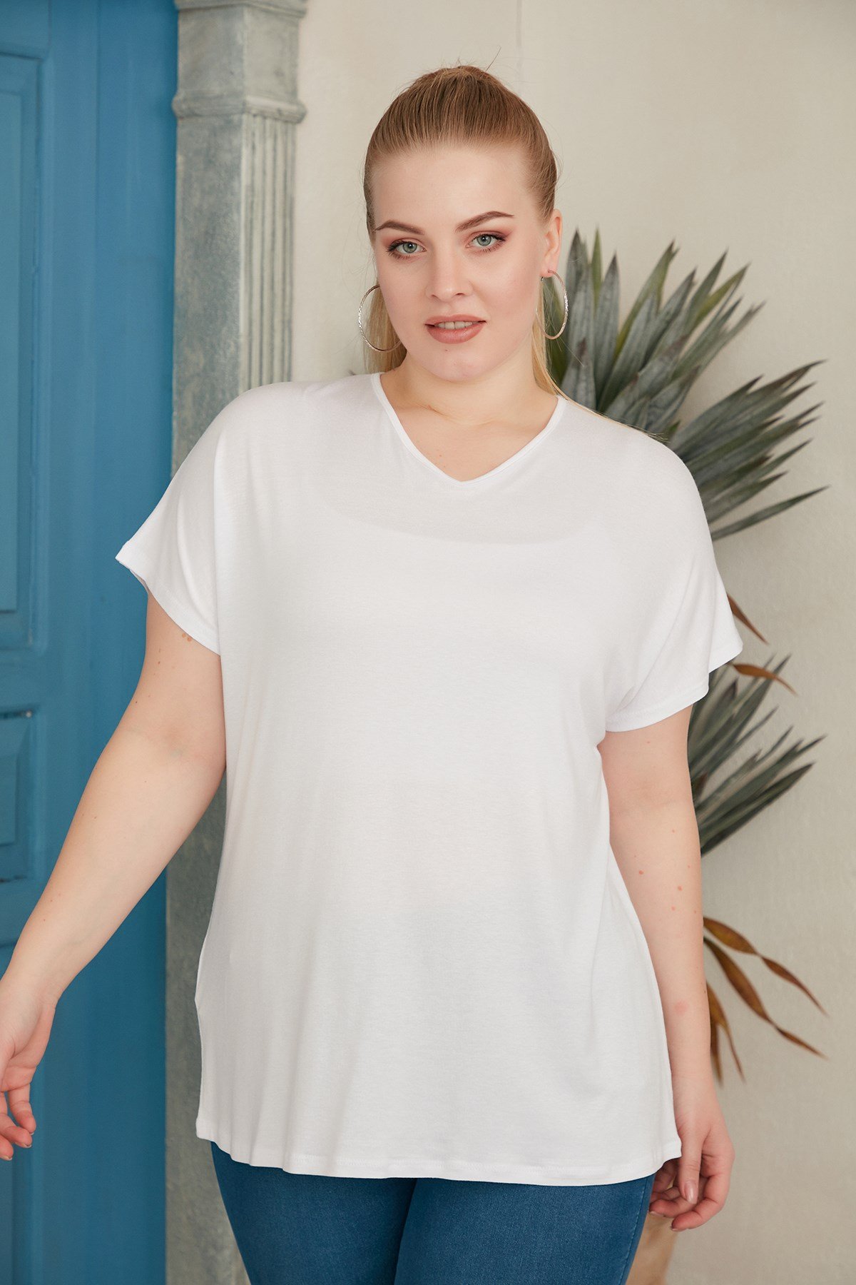Rmg Sırt Halka Detaylı Büyük Beden Beyaz Tişört