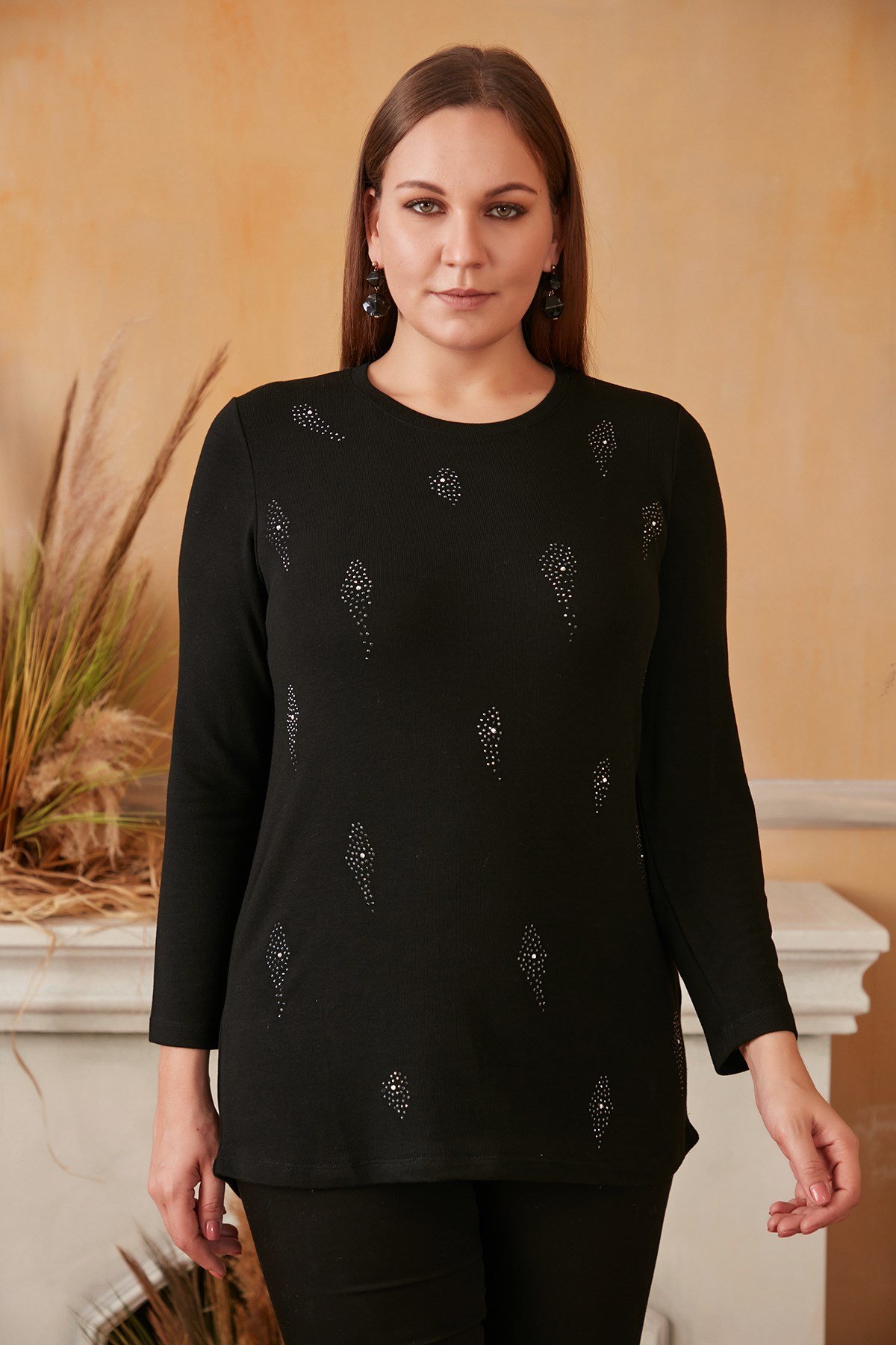 Rmg Taş Baskılı Büyük Beden Siyah Bluz (O4344-SİYAH)
