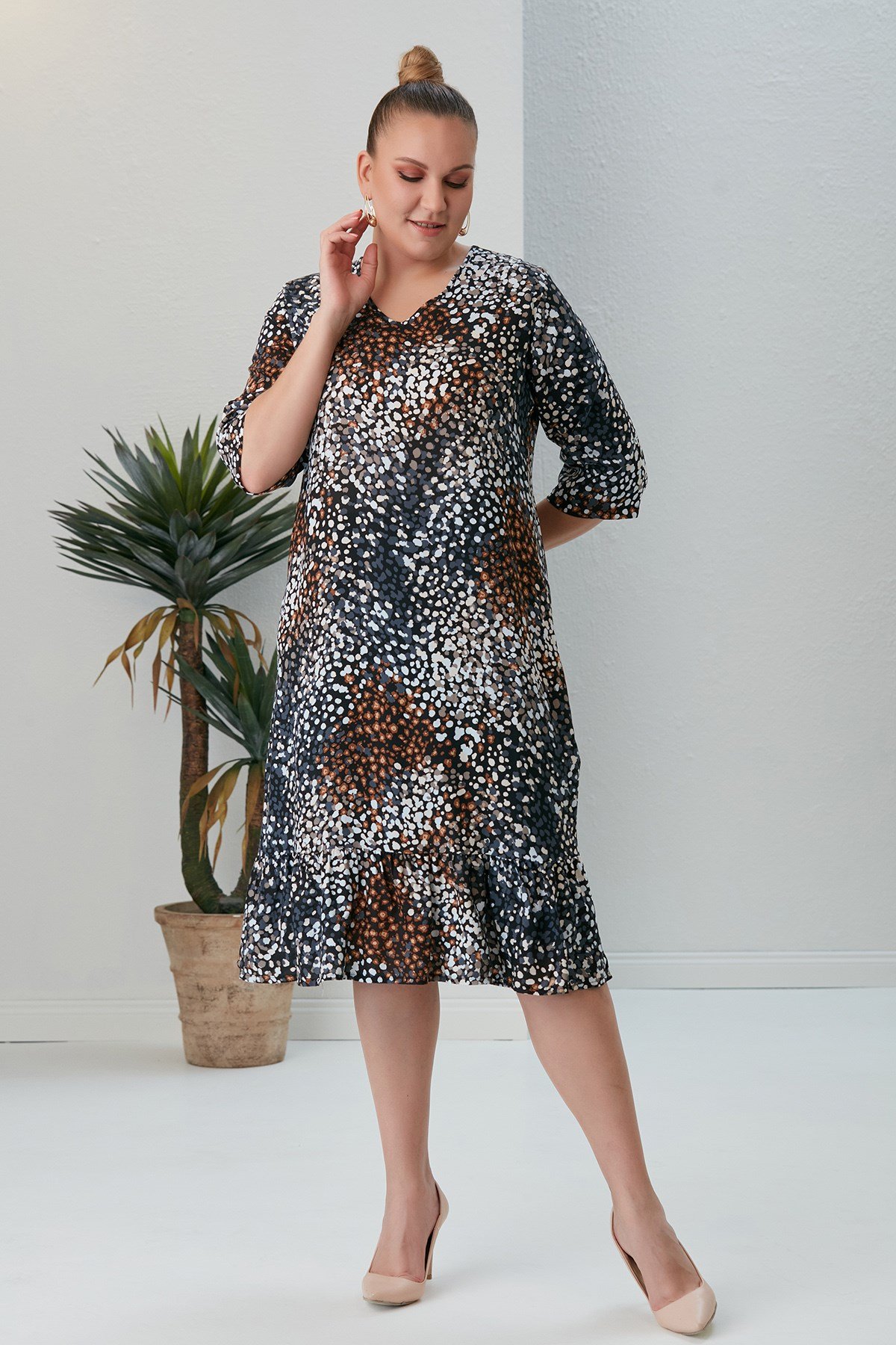 Taş Desenli Büyük Beden Siyah Elbise (O4992-SİYAH)