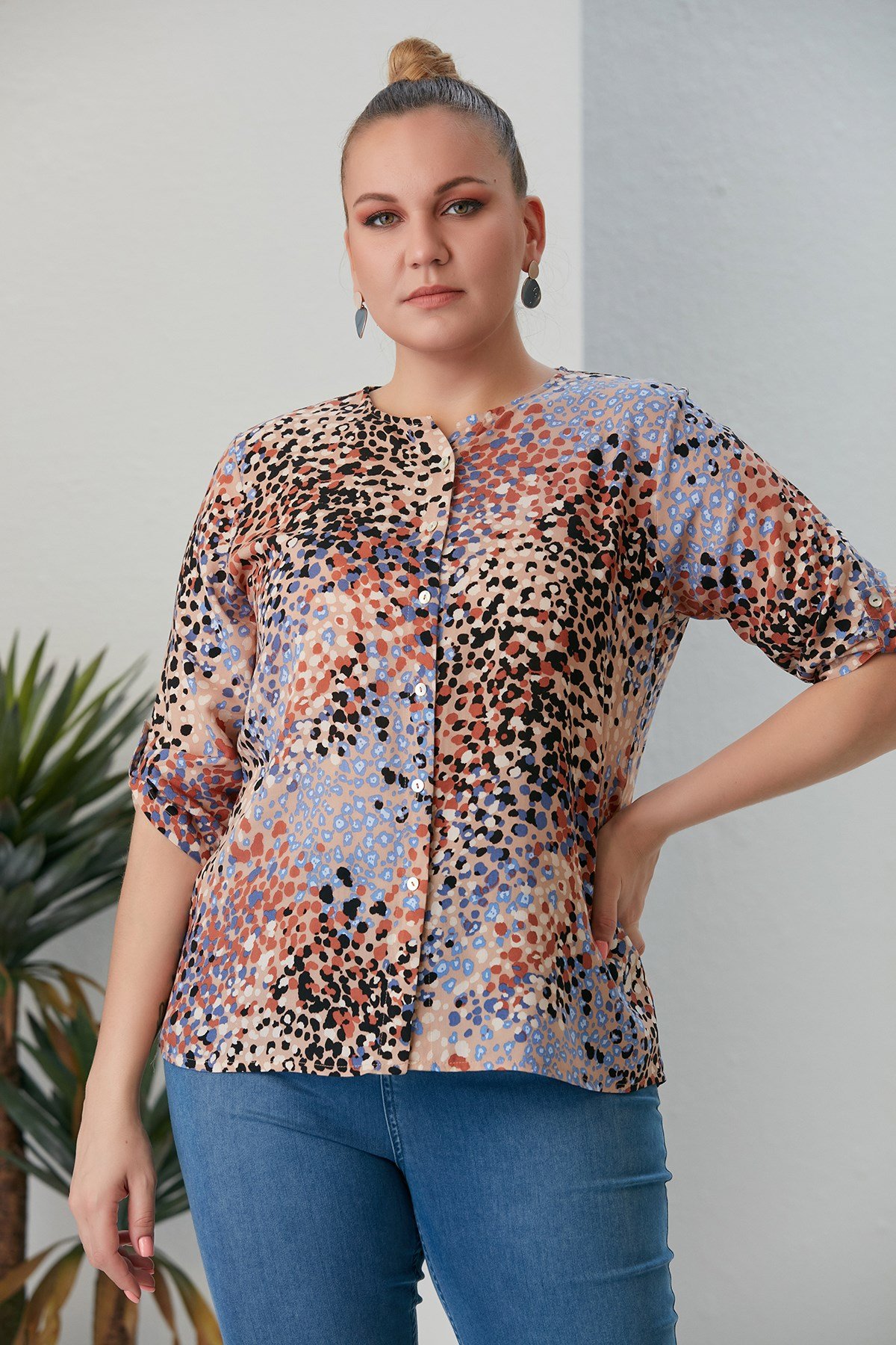 Taş Desenli Büyük Beden Vizon Bluz (O4991-VİZON)