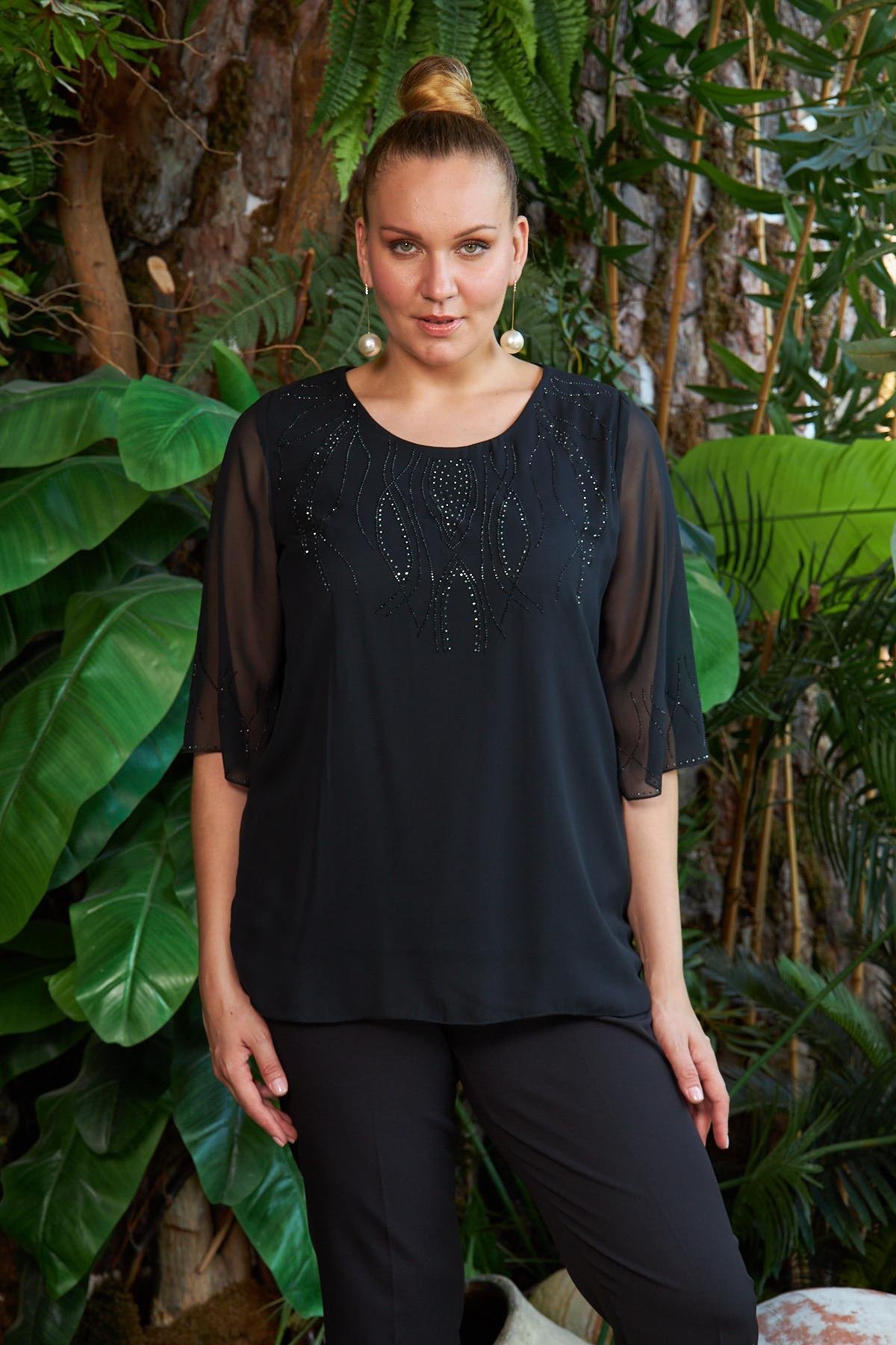 Taş Detaylı Şifon Büyük Beden Siyah Bluz (O6143-SİYAH)