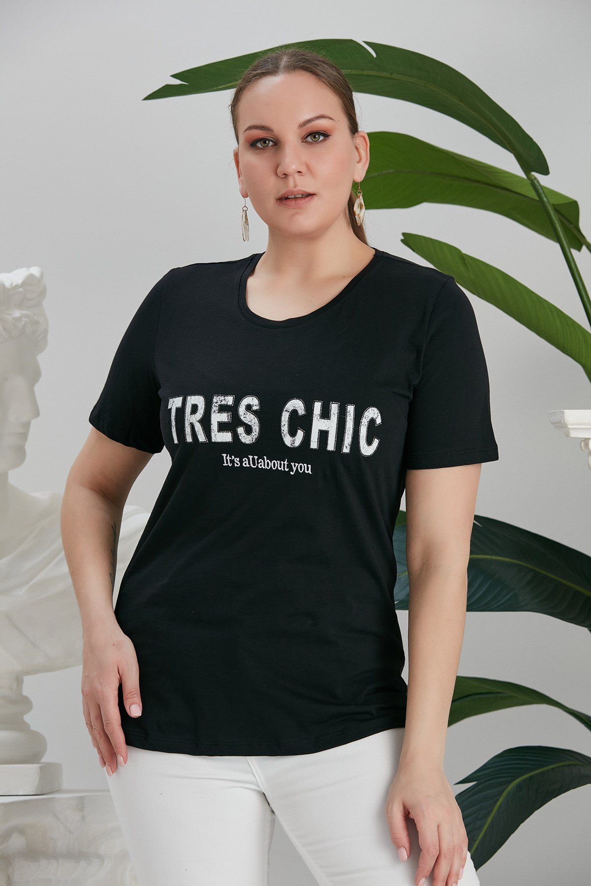 Rmg Tres Chıc Baskılı Siyah Büyük Beden Tişört (O4493-SİYAH)