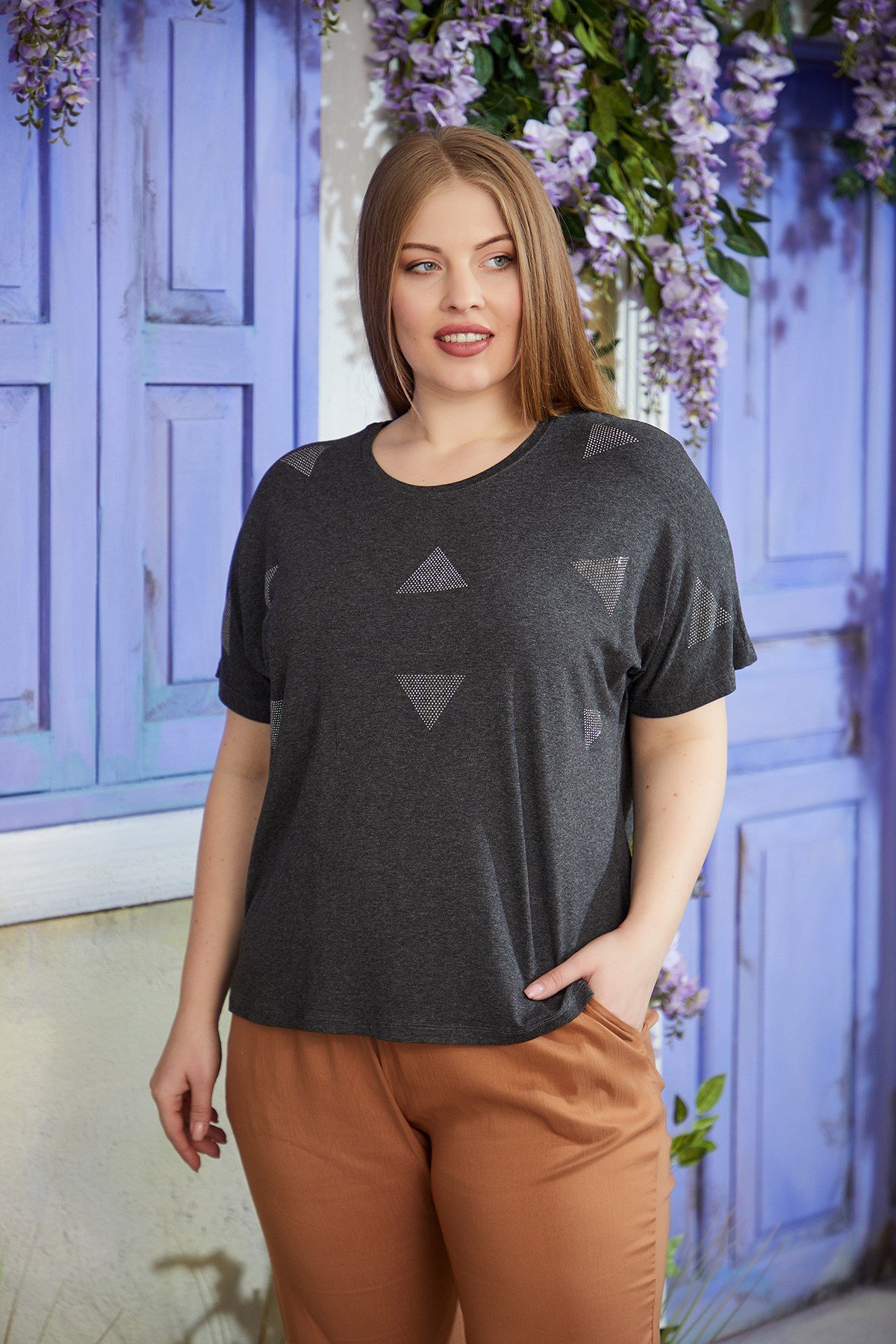 Rmg Üçgen Taş Baskılı Büyük Beden Füme Tişört (O4869-FÜME)