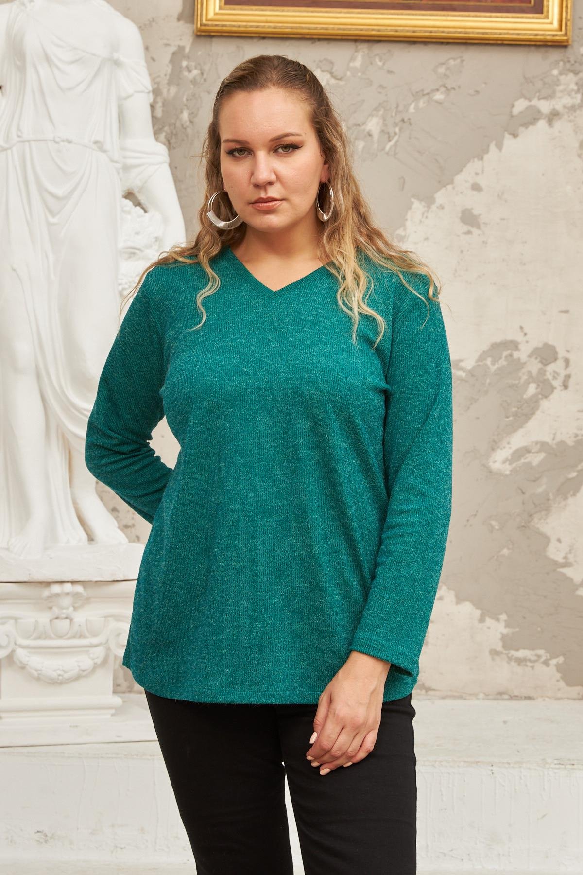V Yaka Büyük Beden Zümrüt Örme Kazak (O6264-ZÜMRÜT)