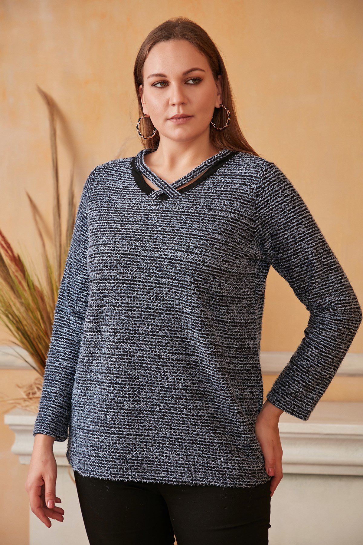 Rmg Yaka Detaylı Büyük Beden Bebemavi Triko