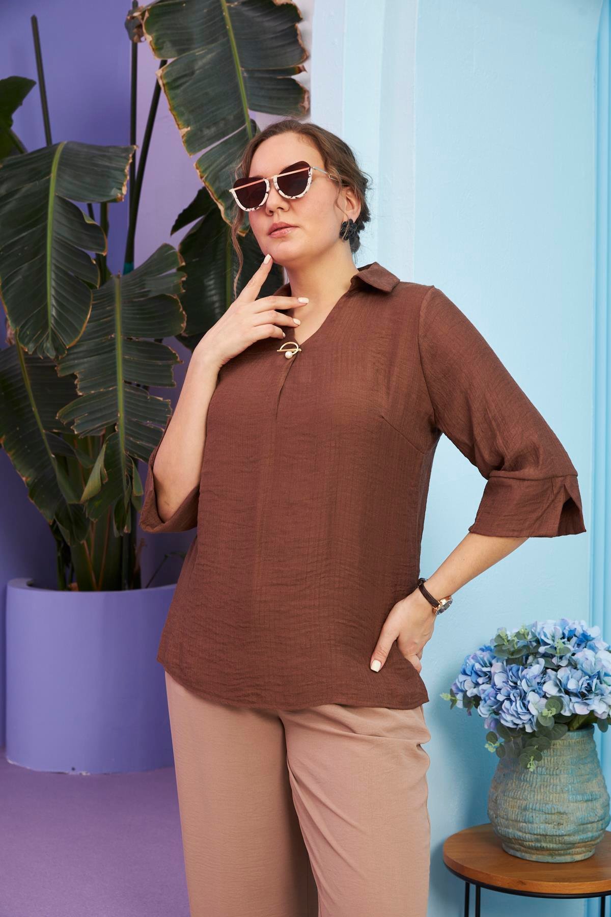 Rmg Yaka Detaylı Büyük Beden Kahve Bluz (O6328-KAHVE)