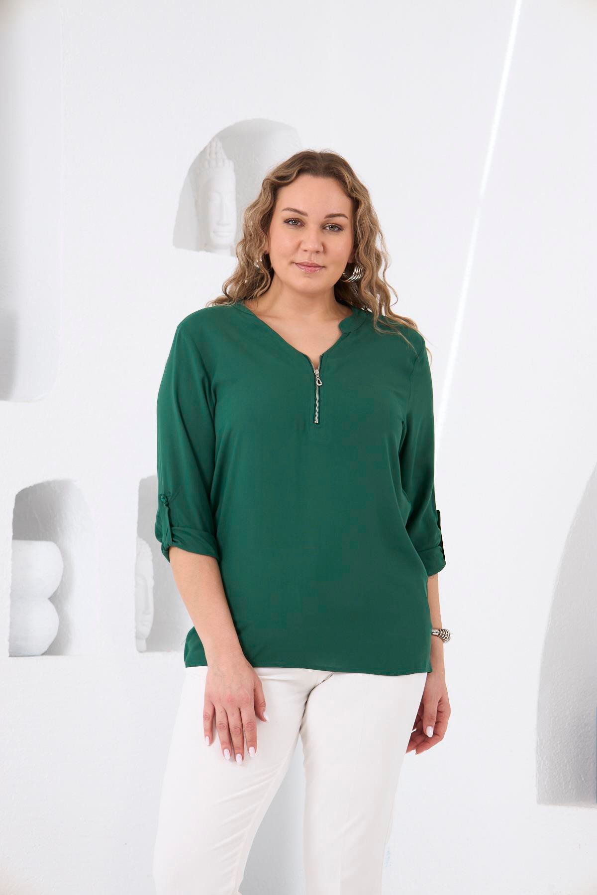 Rmg Yaka Fermuar Detaylı Büyük Beden Yeşil Bluz (O6326-YEŞİL)