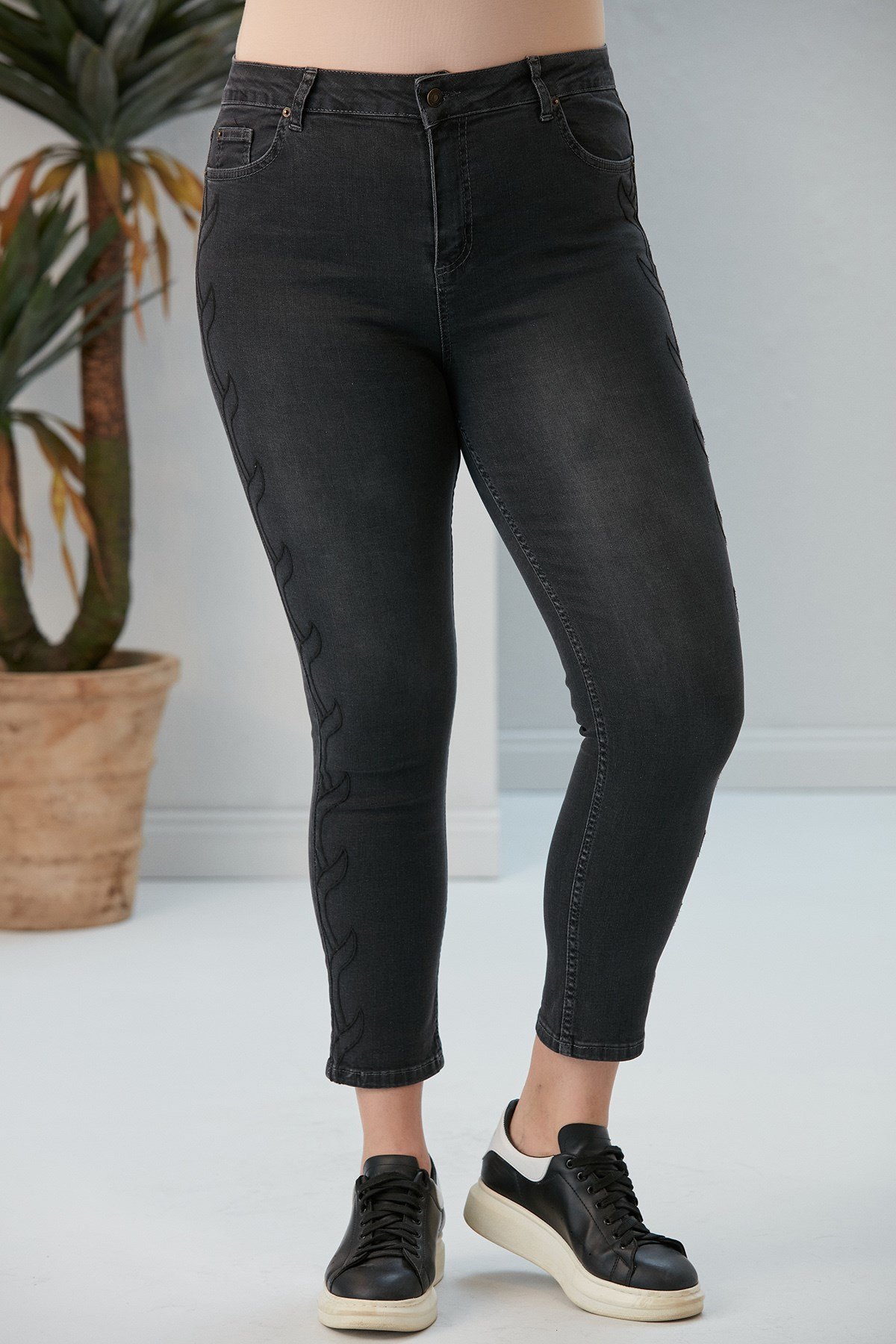 Rmg Yanları Nakış Detaylı Büyük Beden Kim Füme Kot Pantolon