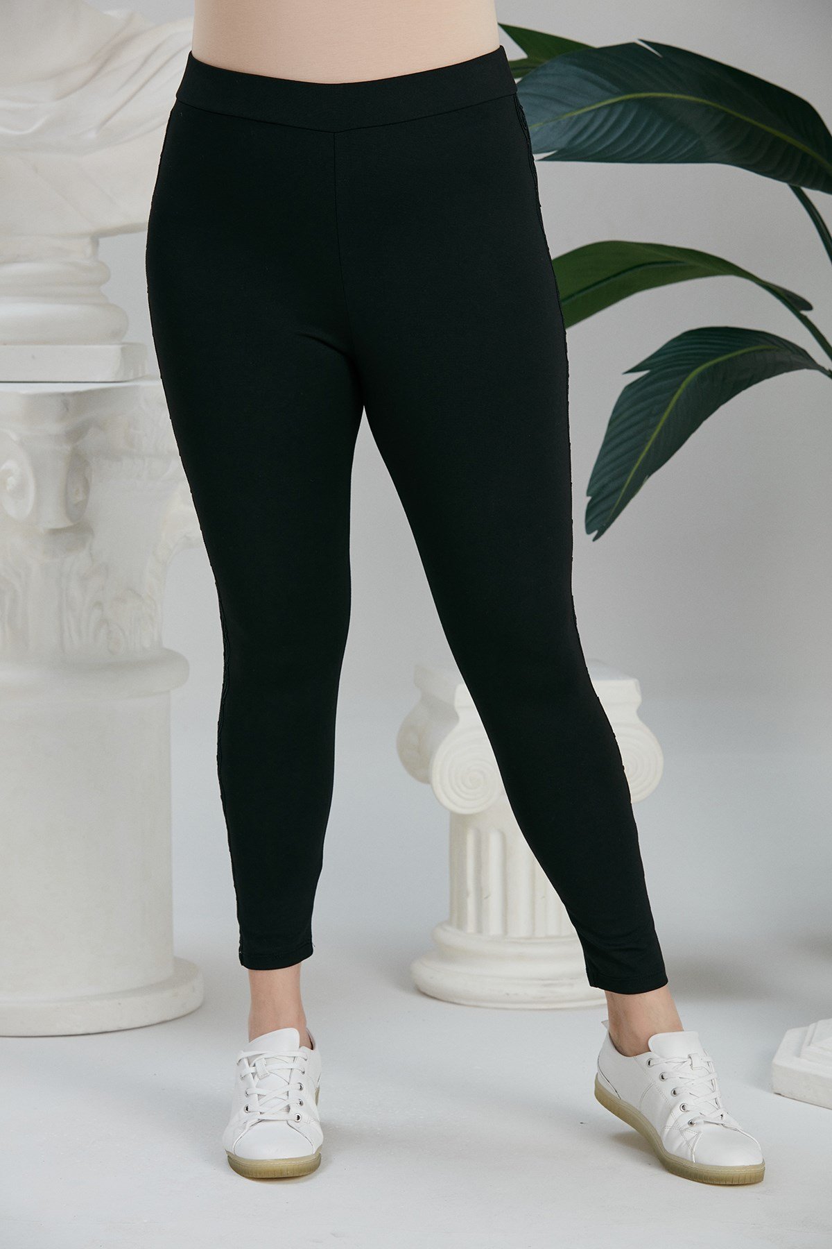 Rmg Yanları Nakış Detaylı Siyah Büyük Beden Tayt (1619-SİYAH)