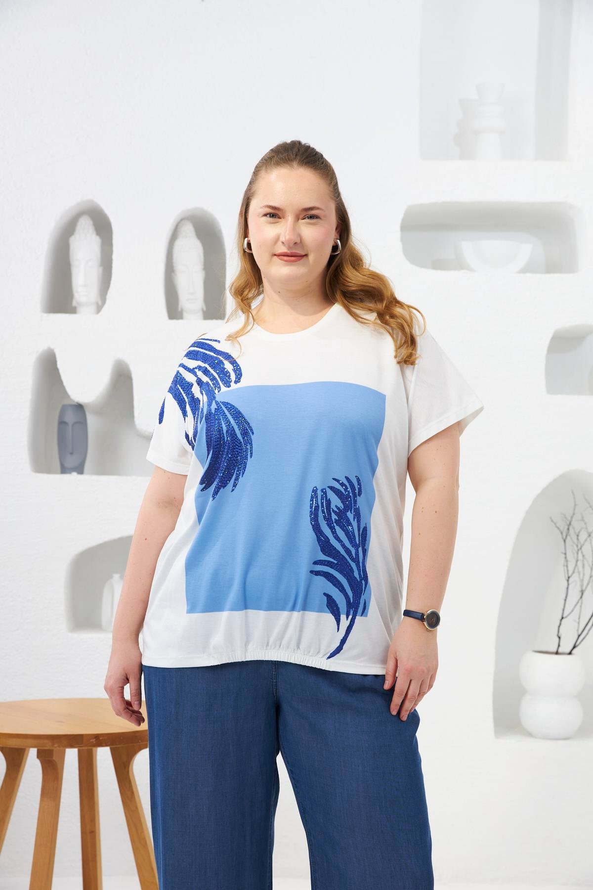Taş Detaylı Büyük Beden Tişört Ekru (O6691-EKRU)