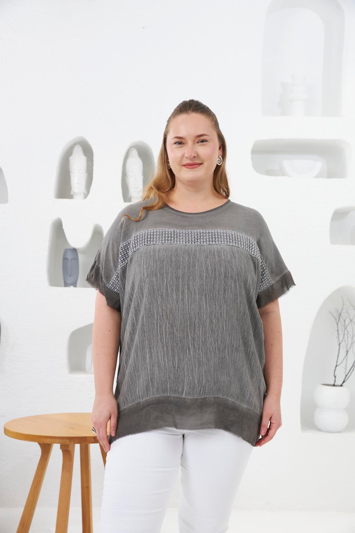 Yıkamalı Büyük Beden Bluz Füme (O6662-FÜME)